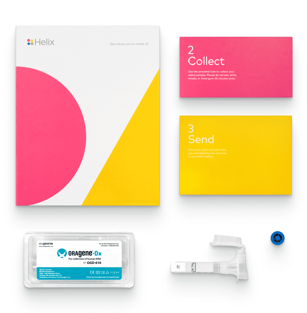 The Helix DNA kit makes collecting your DNA as 1, 2, 3. (Literally)