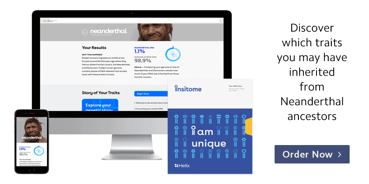 Learning about archaic humans isn’t just about history, it can also be a personal look back at your family’s history. DNA sequencing can help you explore your DNA for traces of Neanderthals and Denisovans. Products like Insitome’s Neanderthal and National Geographic’s Geno 2.0 give you the opportunity to investigate your own ancient roots!