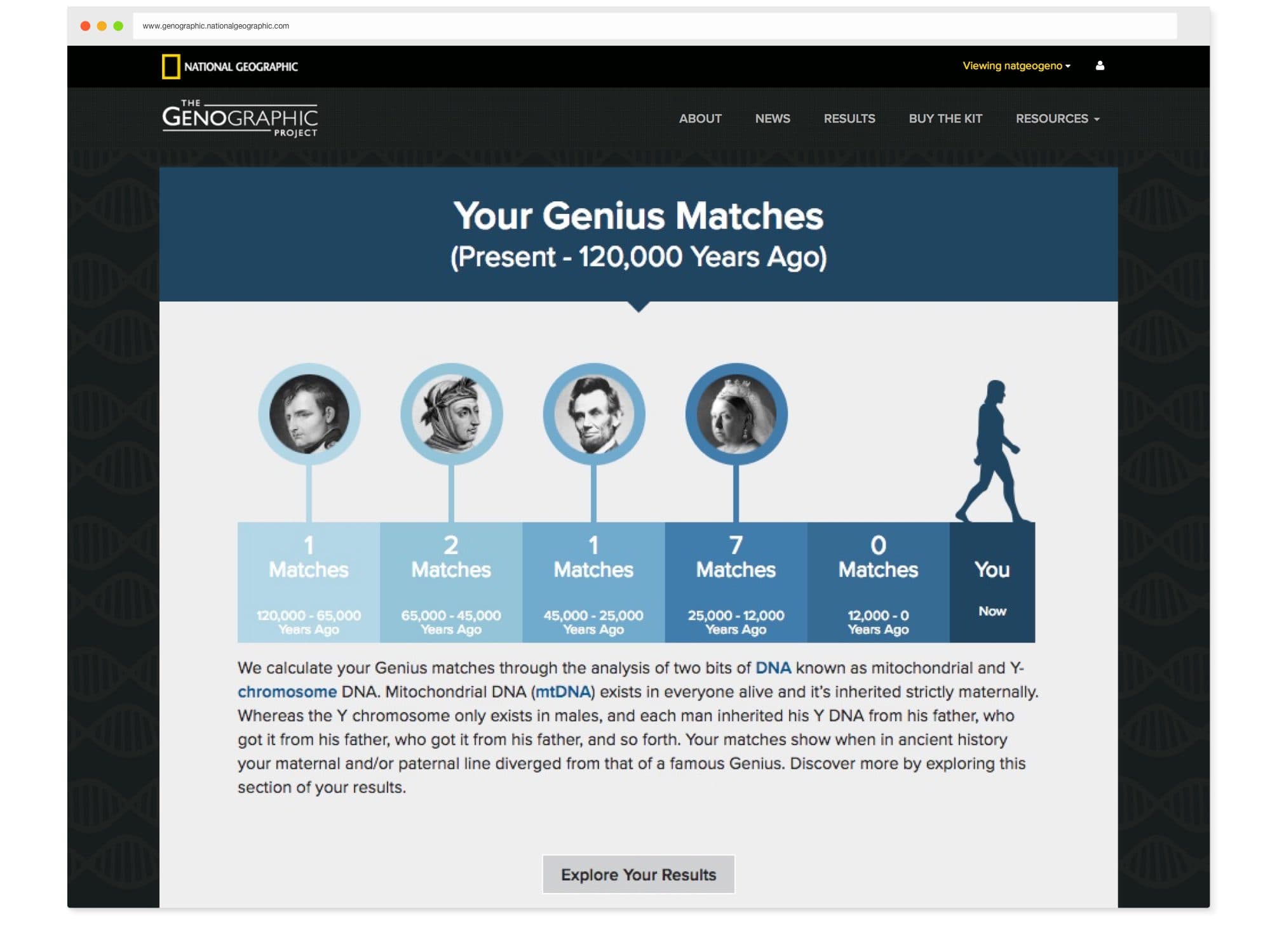 Do you want a wide range of ancestry insights? Geno 2.0 by National Geographic might be the right choice for you. First launched in 2005, the Genographic Project is widely regarded as one of the most comprehensive studies of genetic ancestry ever undertaken. You’ll learn your regional ancestry broken down by percentage, the routes your ancestors took, how much Neanderthal DNA you have, and what “geniuses”—famous figures from across history—you share ancestry with. What’s more, you’ll get access to Geno 2.0’s recently launched iPhone app, where you can get a video summary of your ancestry, take a side-by-side selfie with a Neanderthal, and share them both with friends!
