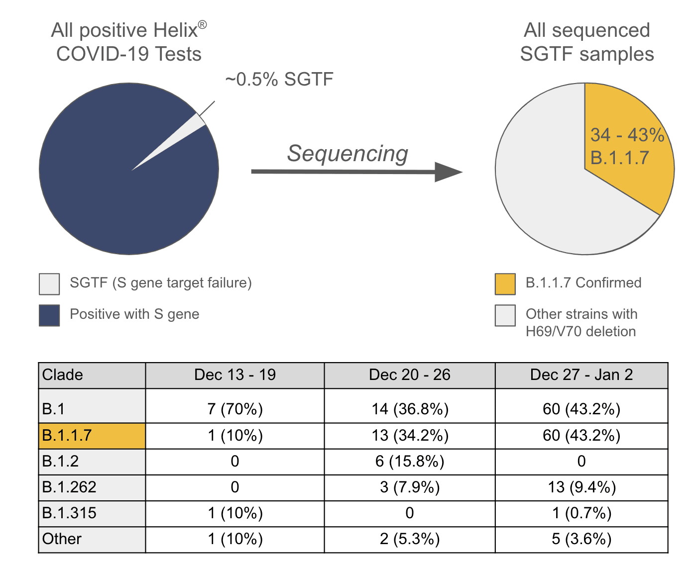 | Percent of SGTF sequenced samples that are B.1.1.7 | 10.0% | 34.2% | 43.2% |