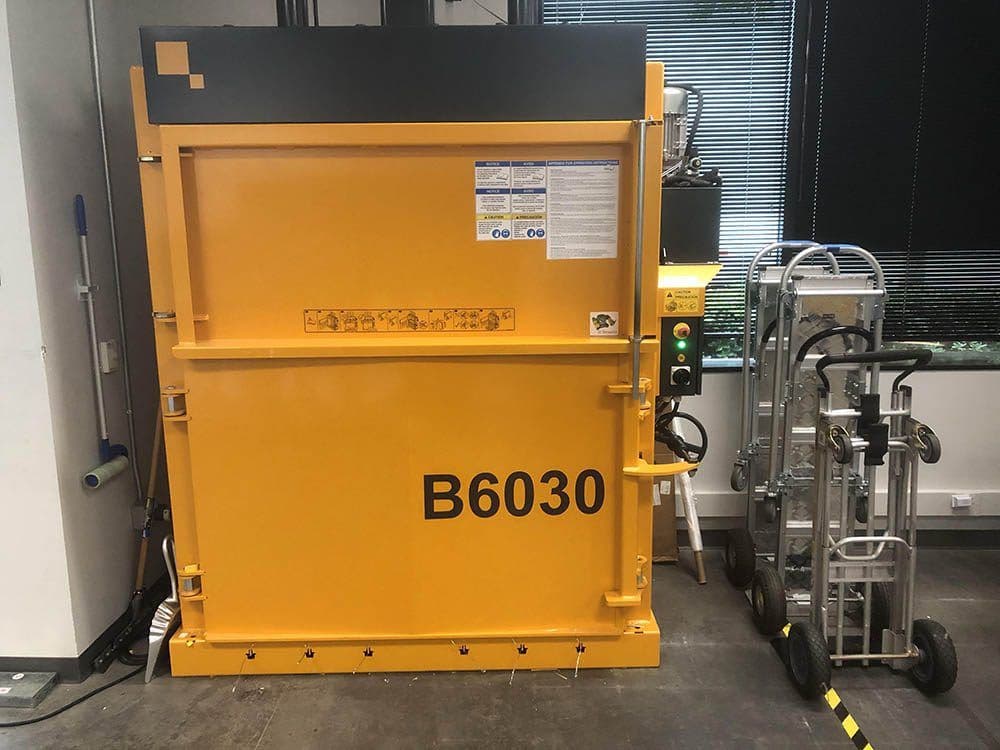 Our brawny baler, El Smasho, turns discarded cardboard into 900-pound bricks. You can probably guess how it earned its nickname.