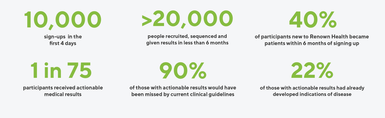 The results: In less than one year, Renown IHI has assembled one of the largest genomic and health data sets in the world and changed the standard of care in their community