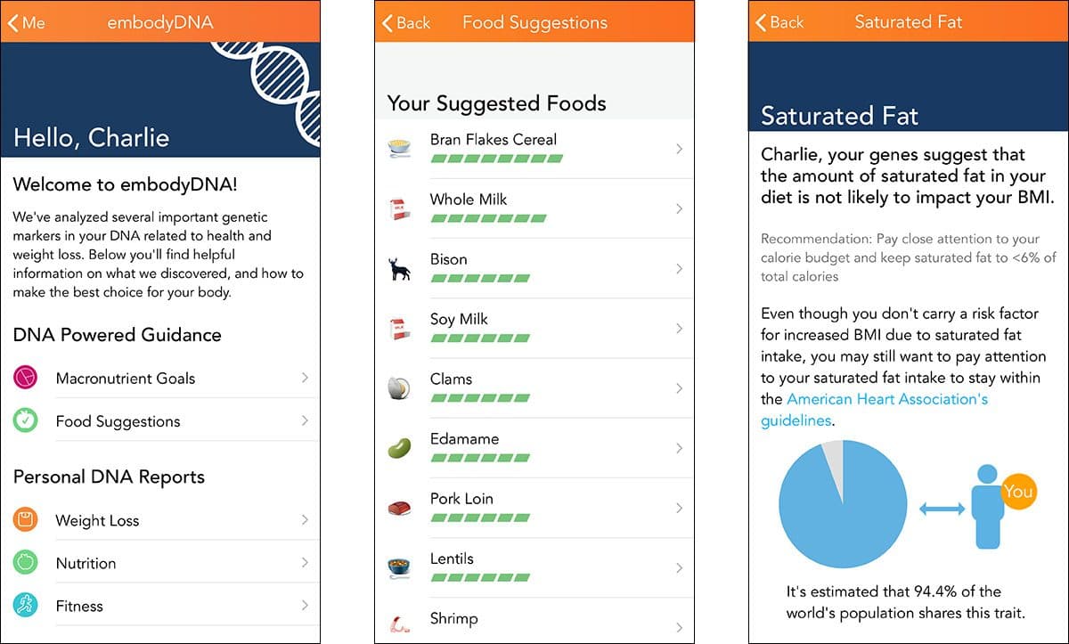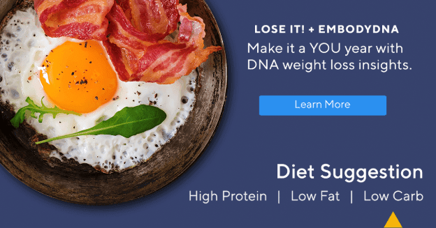 Now, Lose It! has partnered with Helix to make this fantastic weight loss tool even better. Lose It! + embodyDNA enhances your weight loss journey with unique, powerful genetic insights that are personalized to you. Just submit a saliva sample (don’t worry, we’ll send you a kit that makes it easy) and you’ll get food suggestions that are tailored to your DNA information, like whether you are likely to benefit from a low-fat diet, your metabolism of certain vitamins and minerals, and more.