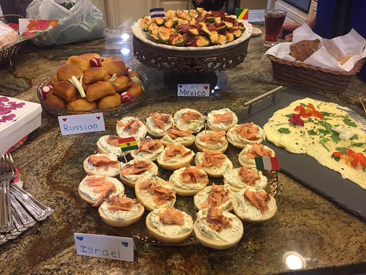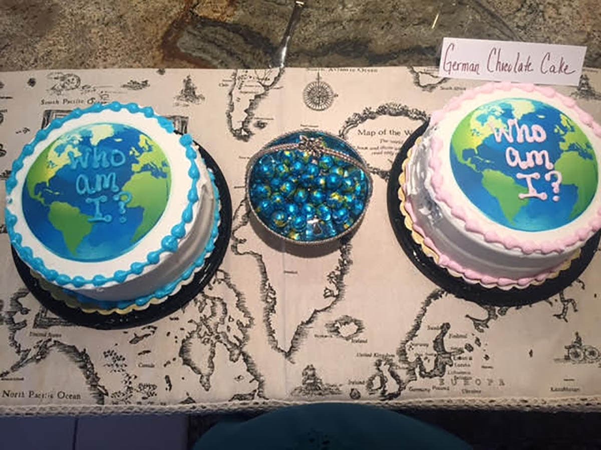 The party—which was “around the world” themed—had biscotti, pierogis, and even a German chocolate cake decorated like a globe and adorned with frosting that read, “Who am I?”