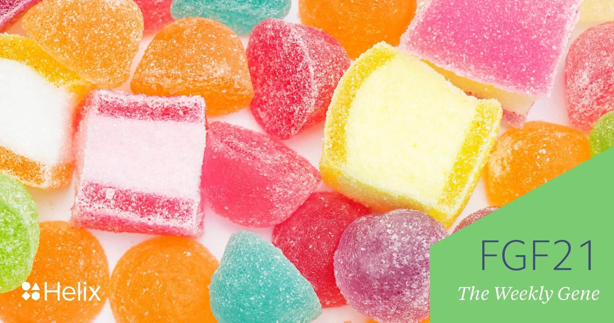 Large scale genetic studies have shown that numerous changes in our DNA can affect our eating behaviors1,2. We’ve previously discussed changes in the DNA coding for proteins known as taste receptors which may affect our ability to sense sweet molecules, but other proteins can also stimulate or influence our cravings. A series of studies have shown that a variant in the gene coding for the protein fibroblast growth factor 21 (FGF21 for short) can affect our eating behaviors1-3. FGF21 is a hormone produced in the liver and other tissues which circulates throughout the body, where it can influence the activity of different organs. Studies in mice have shown that the version of FGF21 found in mice is produced in higher quantities following the ingestion of sugar, suggesting that it may be involved in the regulation of sugar consumption or cravings1,2. Similar research found that mice lacking the ability to produce this version of the FGF21 protein consumed higher amounts of sugar1-3. Collectively, this data indicates that FGF21 may be an important hormone that’s released by the liver in response to dietary sugar in order to signal that enough sugar has been consumed.