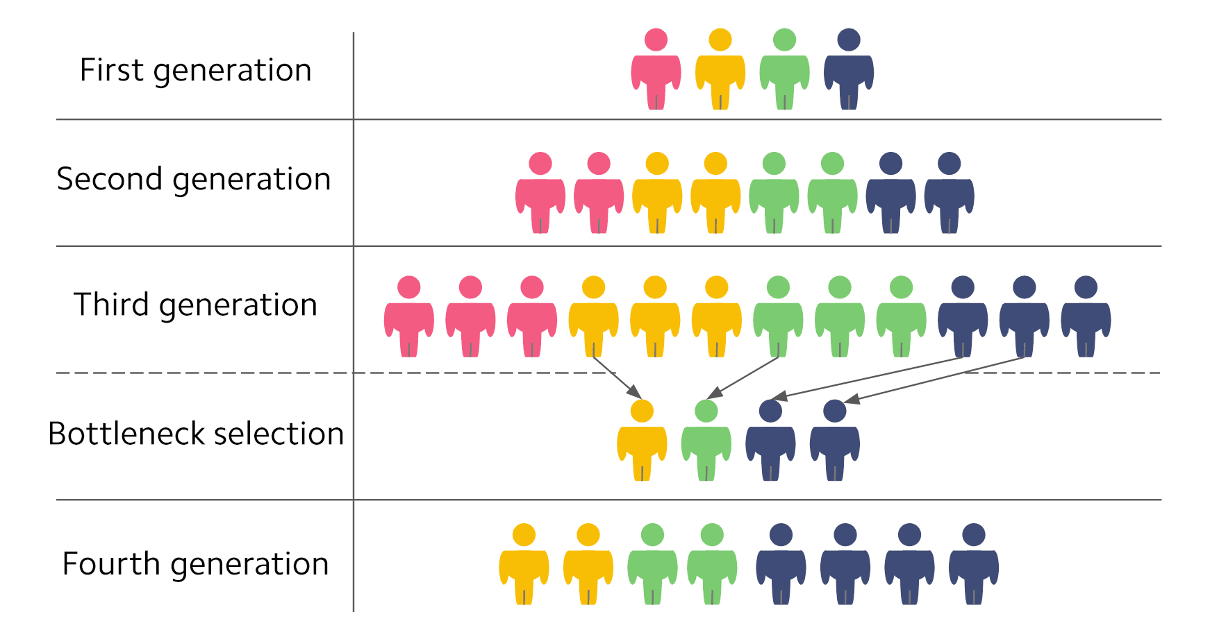 Because reproduction in Gilead is limited to a handful of women and a small group of men, this restricted genetic pool would limit the diversity of DNA information being passed on to the next generation—the same genes are being used again and again to give rise to the next generation for an entire society. This situation sets up what is referred to as a population bottleneck, a moment in time where populations of humans (or other species) have suffered a significant reduction in the number of people who can reproduce. Under restrictive conditions and with a low rate of reproduction, bottlenecks can result in reduced genetic diversity and sometimes lead to inbreeding. Historically, this happened most often on geographically remote islands or villages where a catastrophic event significantly decreased the population, leading to inevitable intra-family mating. In The Handmaid’s Tale, a mixture of political and physical limitations squeeze Gilead’s reproductive potential and results in a bottleneck.