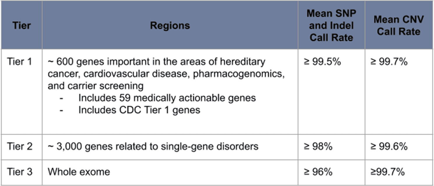 Table 1: Call rates are optimized for clinically relevant portions of the exome.