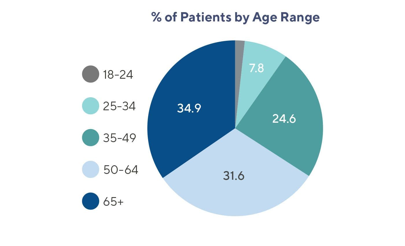 Wide range of adult and geriatric patients across all ages diagnosed with autoimmune conditions with years of look back