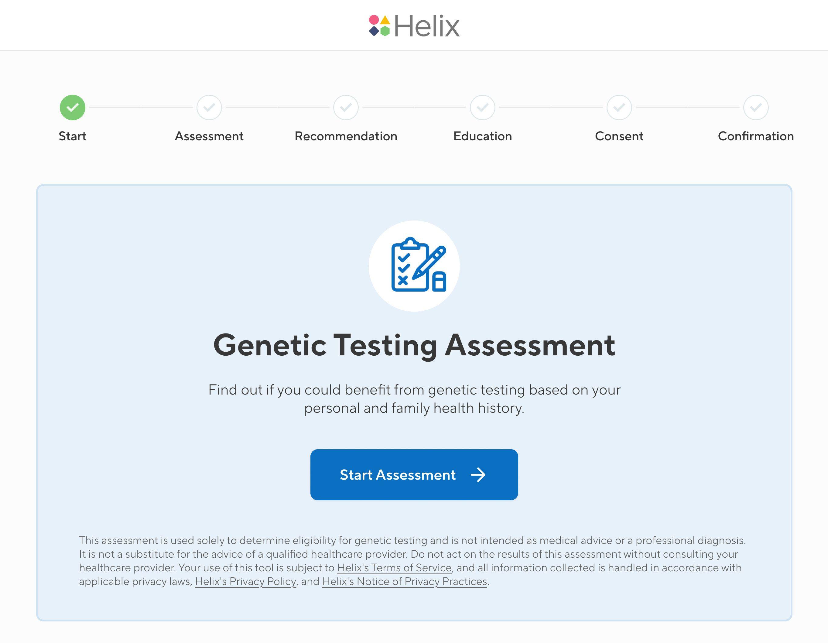 The Helix Genetic Risk Assessment helps providers identify individuals who meet clinical criteria for genetic testing, streamlining care pathways. By automating patient and family history collection, you can quickly identify eligible patients and obtain consent, freeing your team to focus on high-value clinical management.
