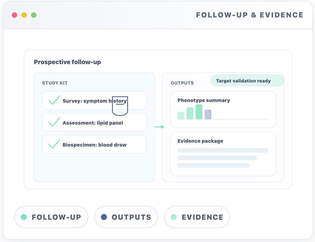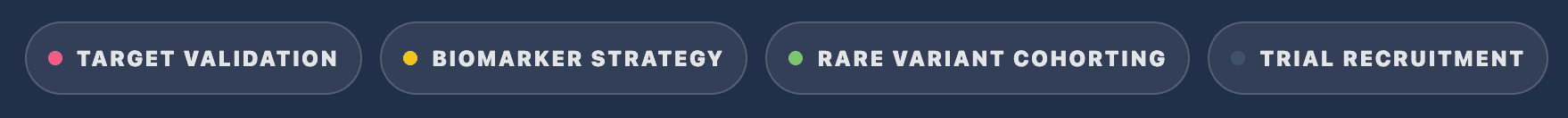 A major biopharma needs to evaluate phenotype impact for a sub‑1% loss-of-function variant associated with cardiometabolic conditions. The follow-up study would have been used to validate the rare LoF variant in the target population and how its impact on downstream phenotypic response. Traditional phenotypic based recruitment would have required broad screening of large populations and long timelines with high cost.